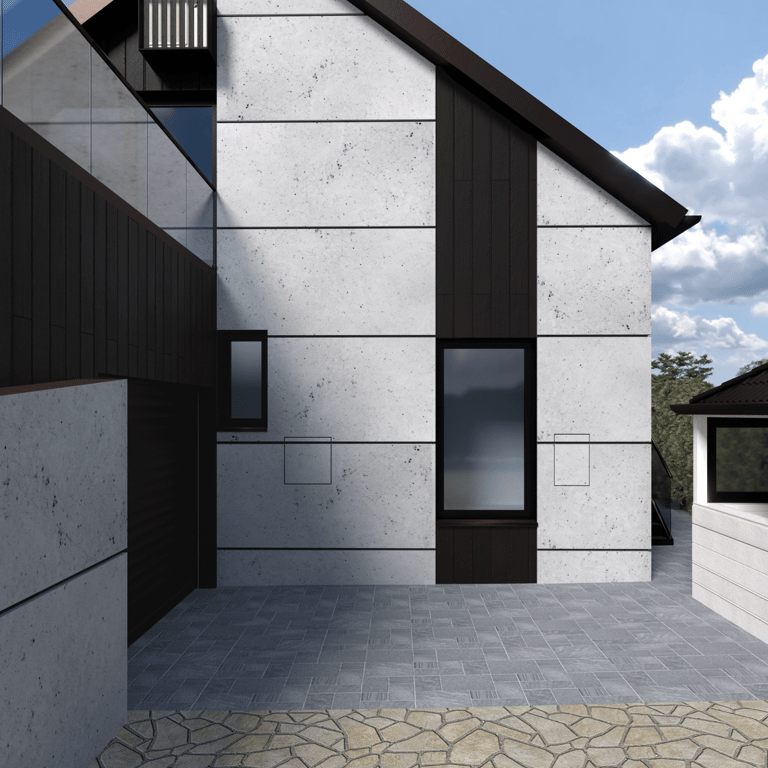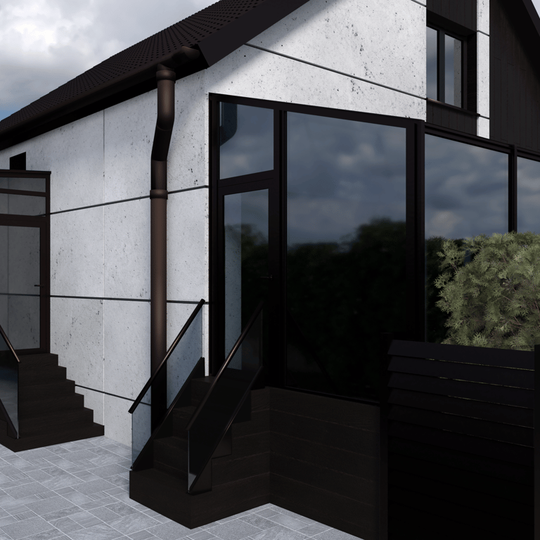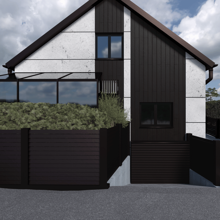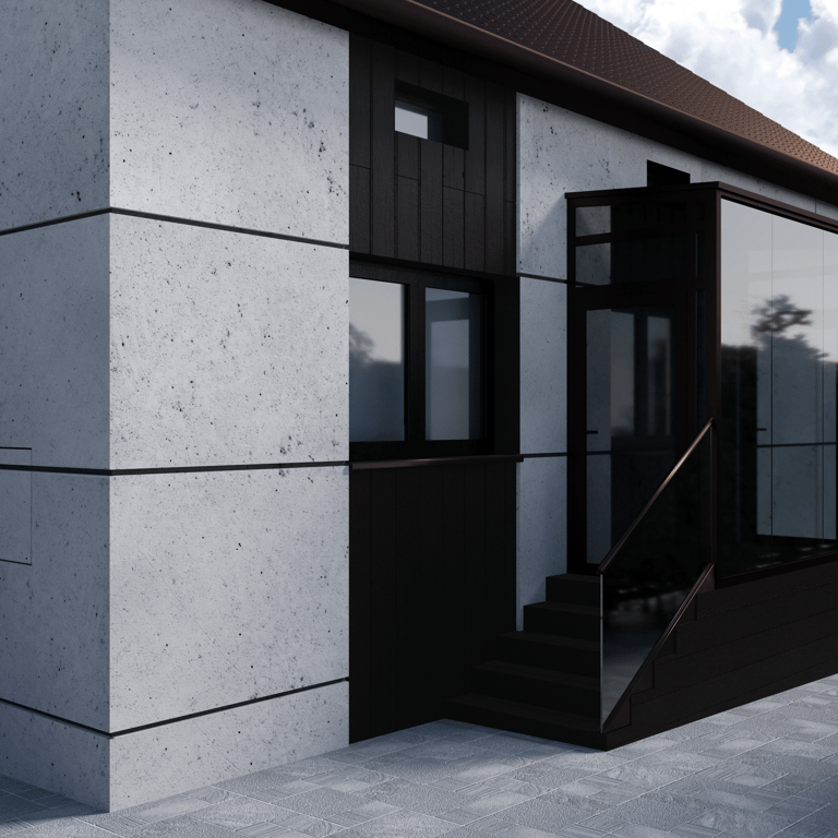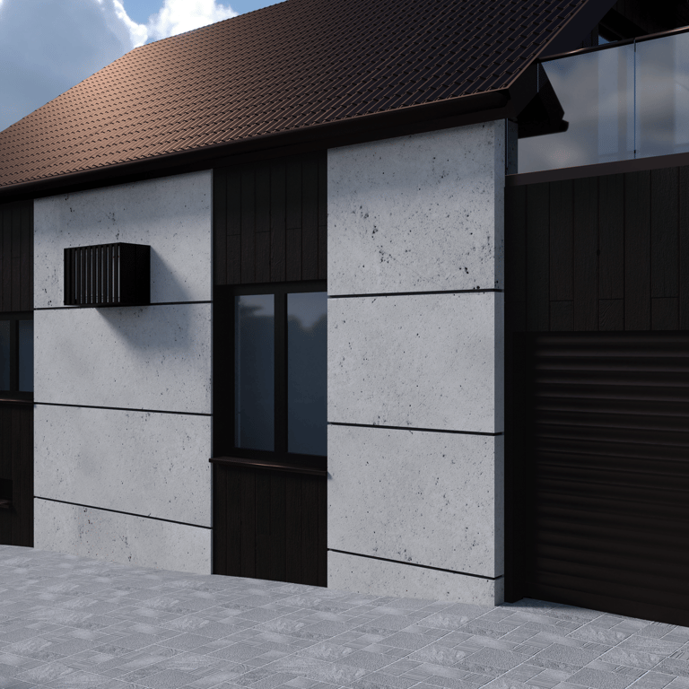 Przebudowa obejmowała metamorfozę fasady domu jednorodzinnego w miejscowości Jasło. W skład projektu wchodziła również rozbudowa budynku o ogród zimowy zakomponowany na elewacji frontowej oraz dodatkowy taras od strony południowej. Minimalistyczna forma budynku została podkreślona opalanym drewnem oraz wielkoformatowymi płytami z betonu architektonicznego. Przyjęta kolorystyka miała na celu ujednolicenie wizualne całości, dzięki nawiązaniu do istniejącego pokrycia dachowego. Elementem wieńczącym modernizację była subtelna iluminacja świetlna zaplanowana w charakterystycznych miejscach elewacji.