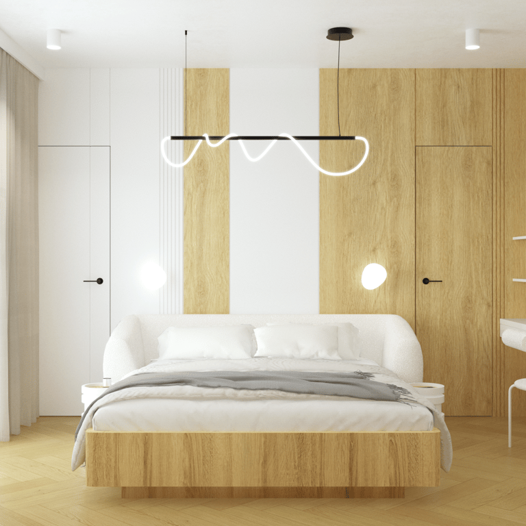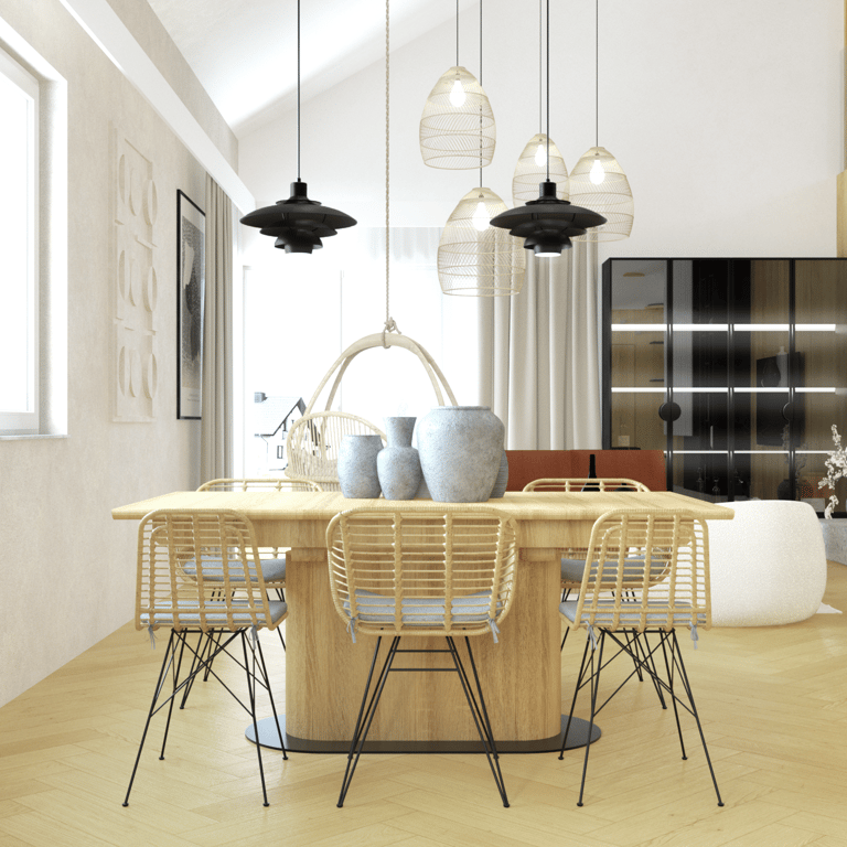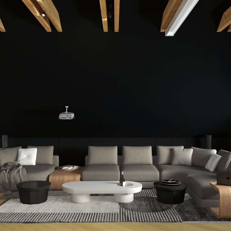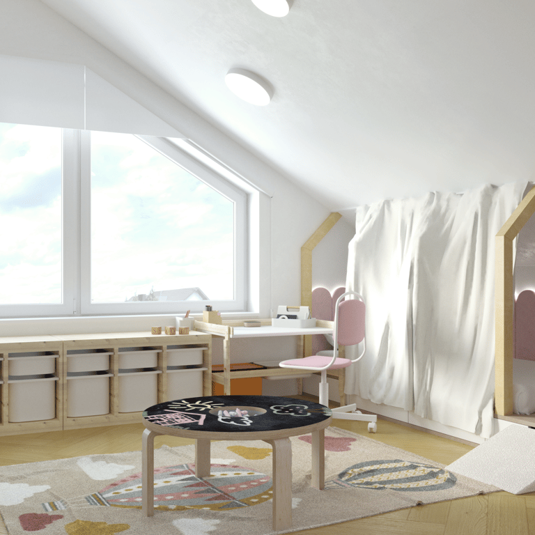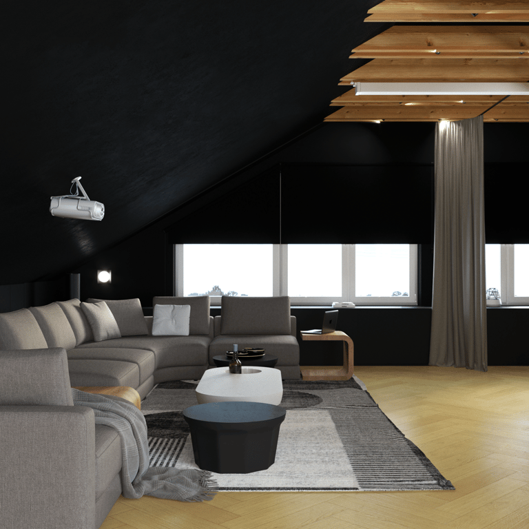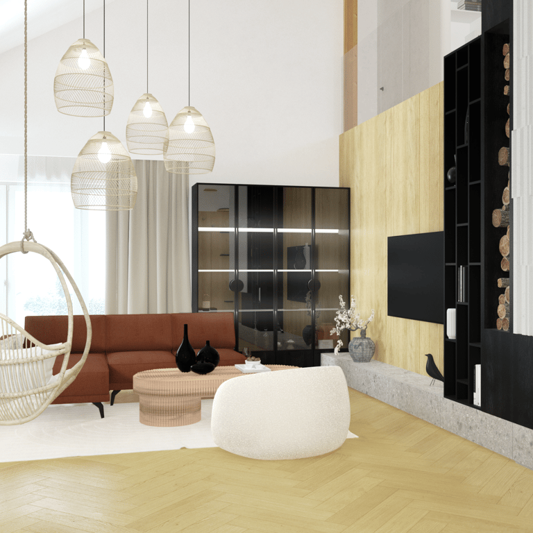Projekt wnętrz domu dla dużej rodziny, ceniącej spotkania w gronie znajomych. Ciepła przyjazna kolorystyka, w której dominują biele i naturalny dąb, została przełamana czerniami i grafitami w pomieszczeniu biurowym oraz pokoju rozrywki - królestwie głowy rodziny. W czasie wolnym domownicy wraz z gośćmi korzystać mogą z przestronnej sali kinowej, sauny czy bilardu. Pokoje dziecięce zaprojektowane zostały z myślą o rozwoju najmłodszych, dlatego znajdziemy w nich interaktywne ścianki, drabinki oraz elementy sensoryczne. Dom obsługuje szereg systemów Smart Home oraz nieustępujące im rozwiązania przestrzenno-funkcjonalne, takie jak przesuwne ścianki separujące przestrzeń na piętrze czy inteligentne szkło w saunie.