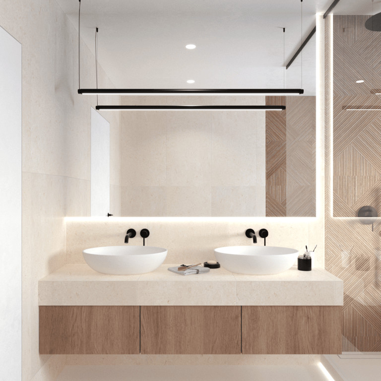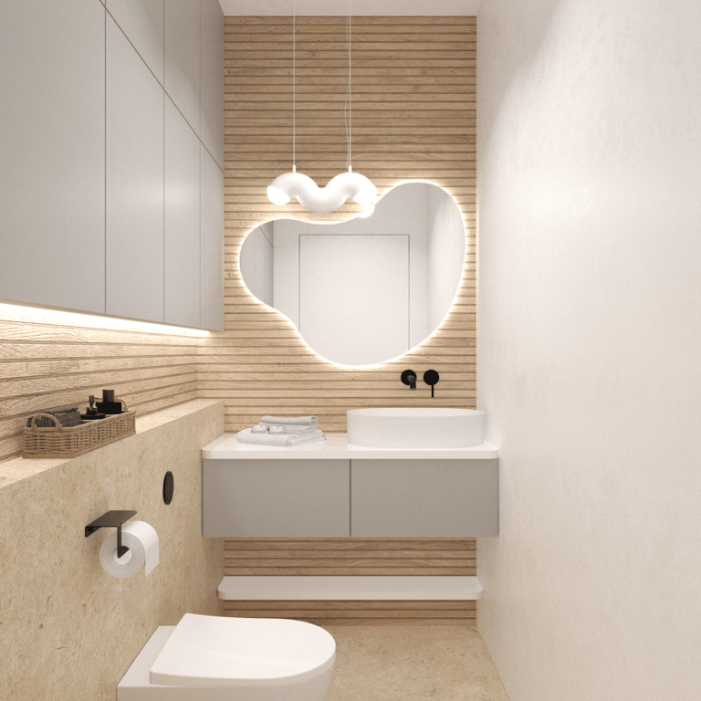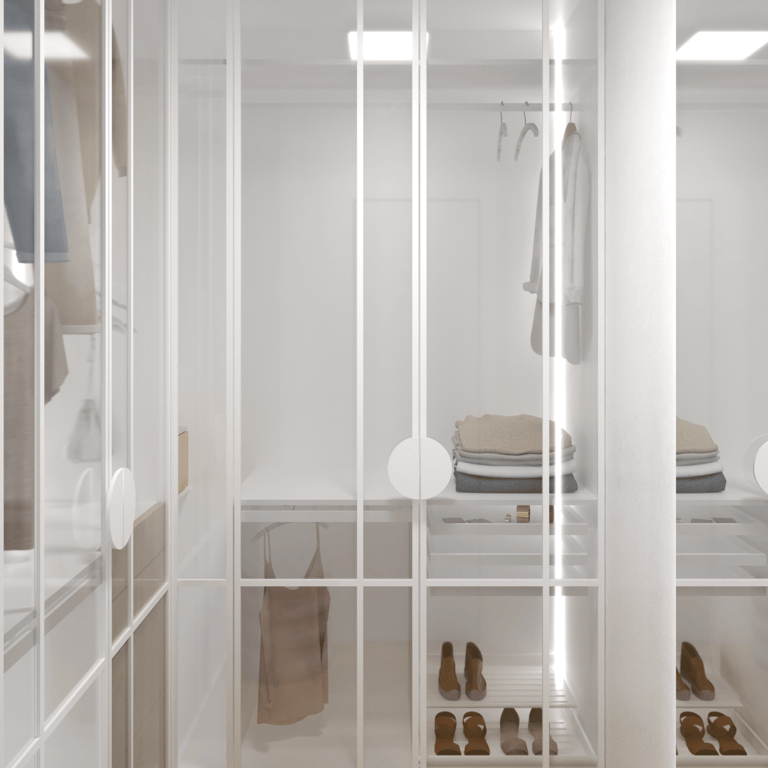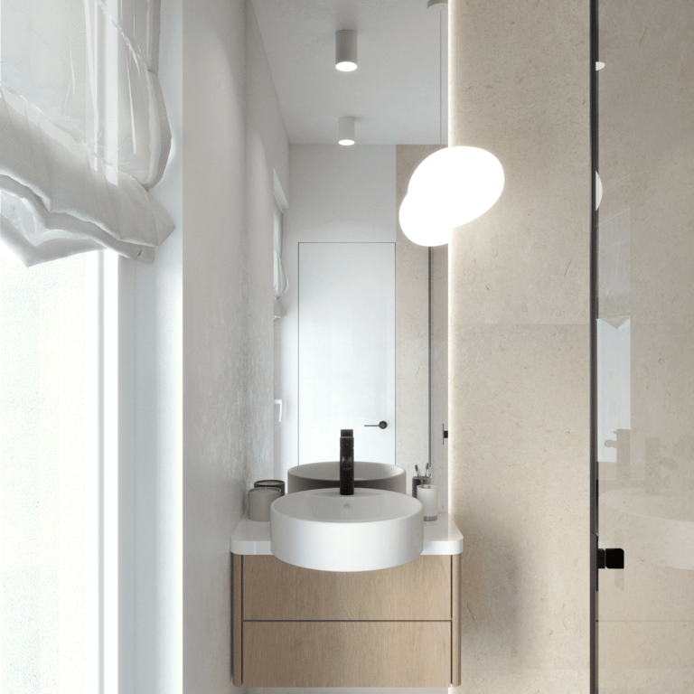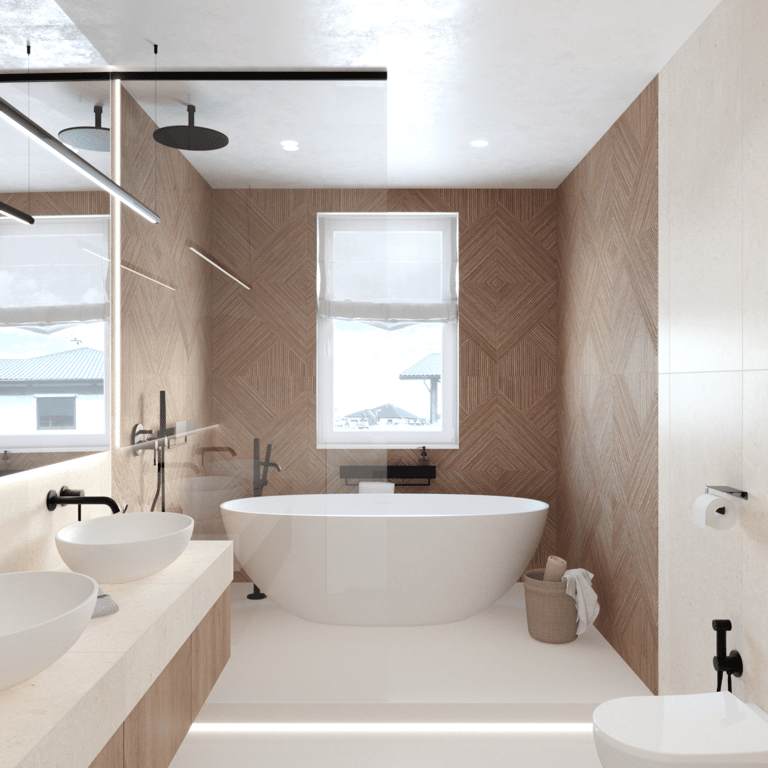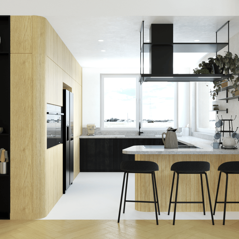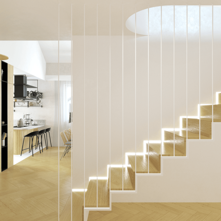 Projekt wnętrz domu dla dużej rodziny, ceniącej spotkania w gronie znajomych. Ciepła przyjazna kolorystyka, w której dominują biele i naturalny dąb, została przełamana czerniami i grafitami w pomieszczeniu biurowym oraz pokoju rozrywki - królestwie głowy rodziny. W czasie wolnym domownicy wraz z gośćmi korzystać mogą z przestronnej sali kinowej, sauny czy bilardu. Pokoje dziecięce zaprojektowane zostały z myślą o rozwoju najmłodszych, dlatego znajdziemy w nich interaktywne ścianki, drabinki oraz elementy sensoryczne. Dom obsługuje szereg systemów Smart Home oraz nieustępujące im rozwiązania przestrzenno-funkcjonalne, takie jak przesuwne ścianki separujące przestrzeń na piętrze czy inteligentne szkło w saunie.