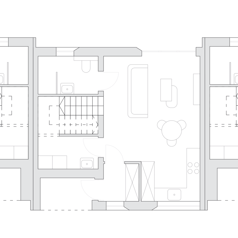 Osiedle budynków szeregowych w miejscowości Wiązownica, położonej nieopodal wioski wypoczynkowej Radawa na Podkarpaciu. Pierwszy etap inwestycji obejmował budowę dziewięciu niezależnych domów jednorodzinnych. Każdy segment posiada dwa piętra mieszkalne, możliwe do adaptacji poddasze, własny ogród oraz dedykowane miejsca postojowe na ogólnodostępnych parkingach. Architektura budynków nawiązuje do wzorców skandynawskich, charakteryzuje się oszczędnością i prostotą formy. Minimalizm elewacji podkreśla monochromatyczna paleta barw, a asymetryczny układ stolarki uzupełnia detal w postaci glifów okiennych. Wszystkie obiekty zaprojektowano w sposób zrównoważony, uwzględniając szereg rozwiązań ekologicznych, m.in. pompy ciepła oraz panele fotowoltaiczne.